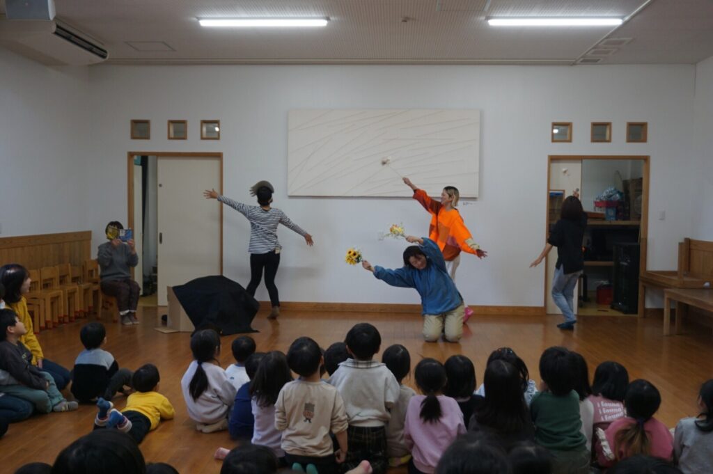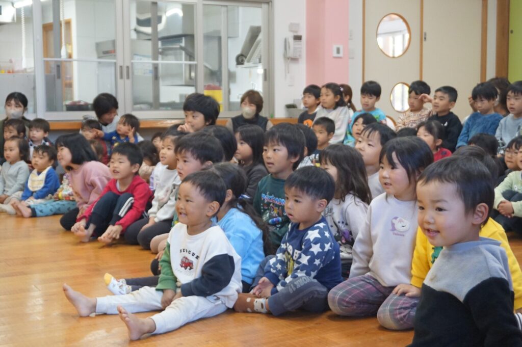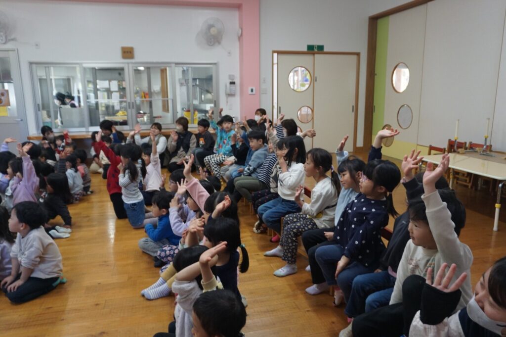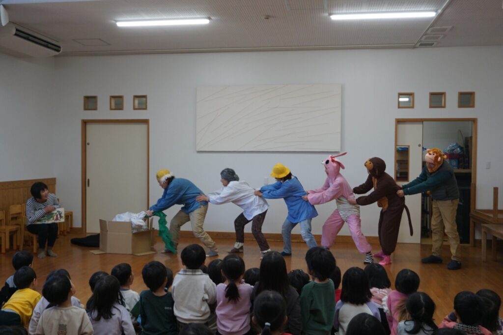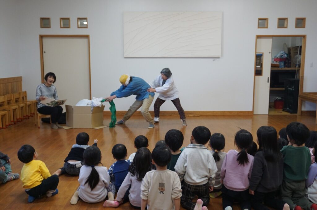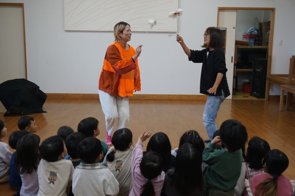 枕崎市を拠点に活動する「のはら」の方々をお招きして、人形劇を観劇しました。「のはらうた」の詩の朗読に合わせて、おもしろ小道具が飛び出したり、おかしな動物が出てきたり、楽しい観劇ができました。あっという間でしたが、「楽しかったー」「また来てねー」と喜ぶ子どもたちでした。