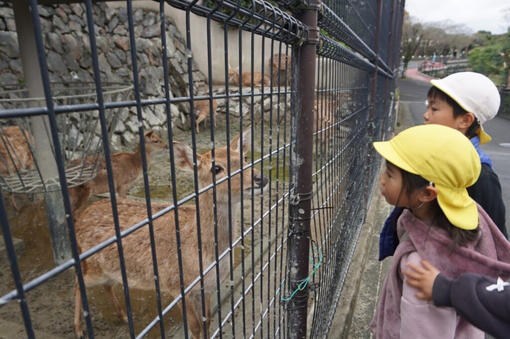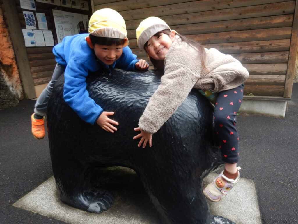 ひまわり組 平川動物公園 遠足 2026/3/19 2026年3月26日 ひまわり組と平川動物公園へお別れ遠足に出かけました。何度も行ったことのある場所だというのに、16人の仲間と一緒だと動物の見え方も変わるようです。終始大はしゃぎの子どもたちについていく大人はへとへとでした。途中でおやつ休憩もあって、たくさん食べたようでしたが、給食もぺろりとたいらげていました。すてきな思い出になっていたら嬉しいです。